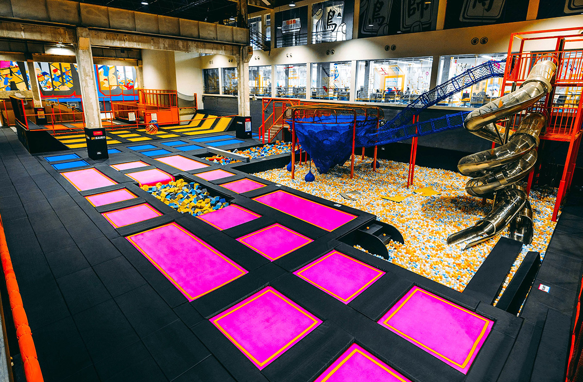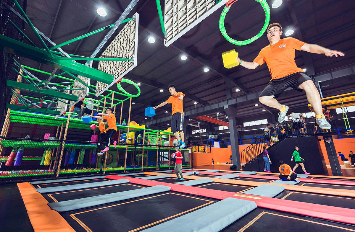 結合多種娛樂運動項目的體驗式室內運動公園,場館設有自由蹦床區、拓展蹦床區、扣籃蹦床區、蹦床體操館、Party room等,為多個年齡層次的人群提供了豐富多彩的蹦床運動體驗,同時也給公司團隊拓展以及生日主題活動舉辦提供了一個新穎另類的活動場所。