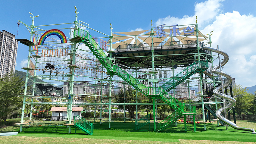 溪禾山探險水晶塔是奇樂集團設計建造的高空拓展項目,是