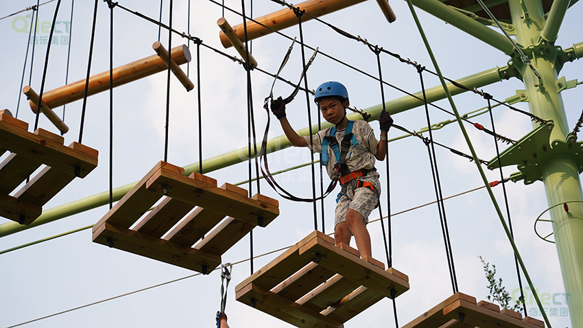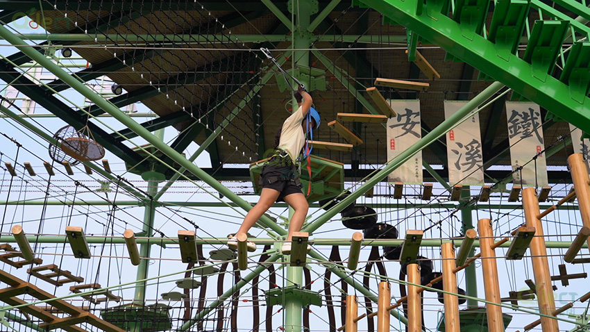面向青少年及年輕群體,設計茶葉橋、飛行鳥橋、懸浮樁、七匹狼、直排繁星樁、穿針引線、圍棋網陣、蕩繩、流云、功夫木樁、文房四寶•毛筆、平衡圓木橋、波浪橋等33個需要平衡力與協調性的關卡。