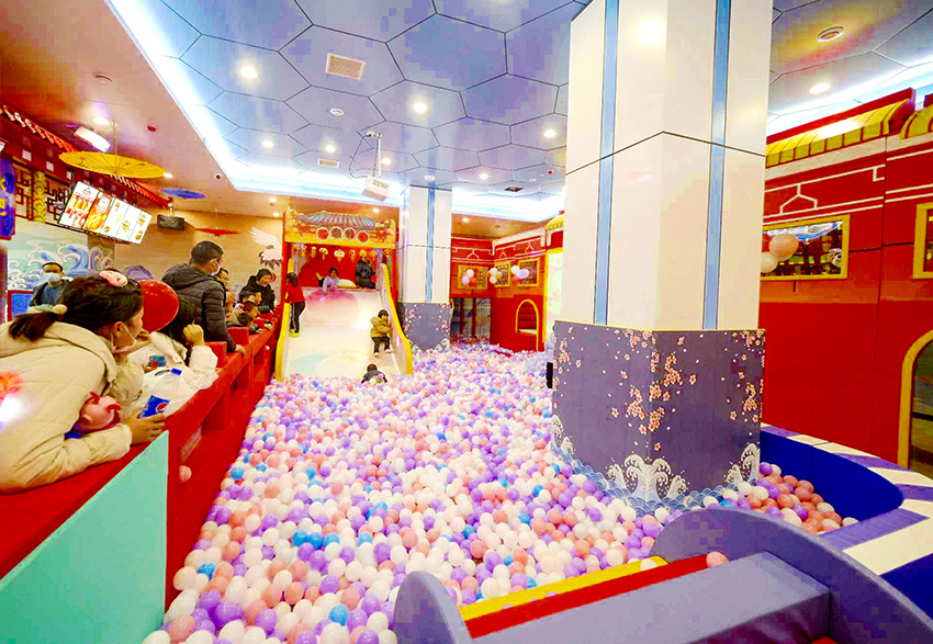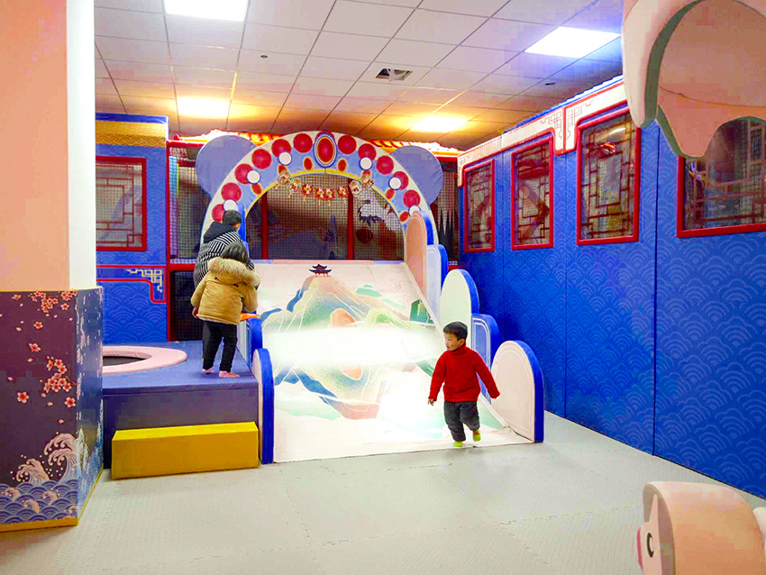 益童歡樂園以兒童游樂為中心,融入多種親子互動、少兒益智的優質項目,包括了滑梯、球池、沙池、椰子樹、彈跳迷宮等項目,玩法豐富有助于兒童身心健康成長。國潮風主題形象地將帶有濃郁傳統節日文化色彩的喜慶元素展現出來,從而增強了樂園文化屬性。真正將中華文化精粹植入樂園項目中,為游客打造一個傳承悠久歷史文明的古風世界,使孩子們在玩樂中從小培養起對傳統文化的認同與自豪感。
