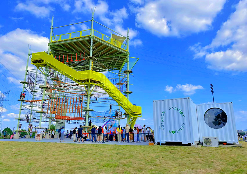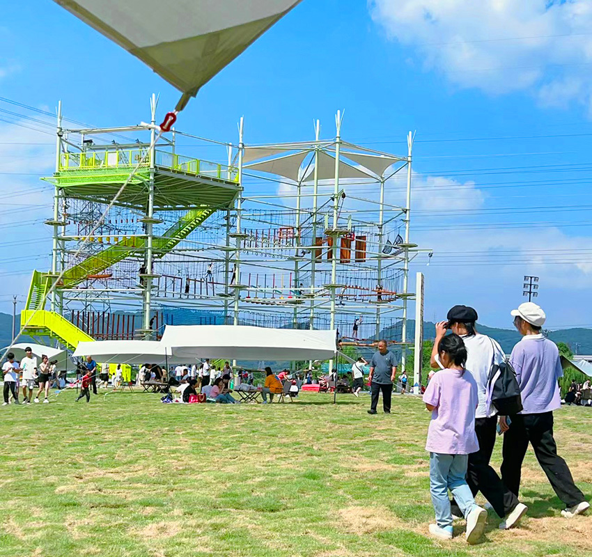 醒目的外觀設(shè)計美感,豐富有趣的拓展探險項目,完備的安全保障系統(tǒng)和專業(yè)的運營指導團隊,讓它成為樂園營地最耀眼的“明星”。