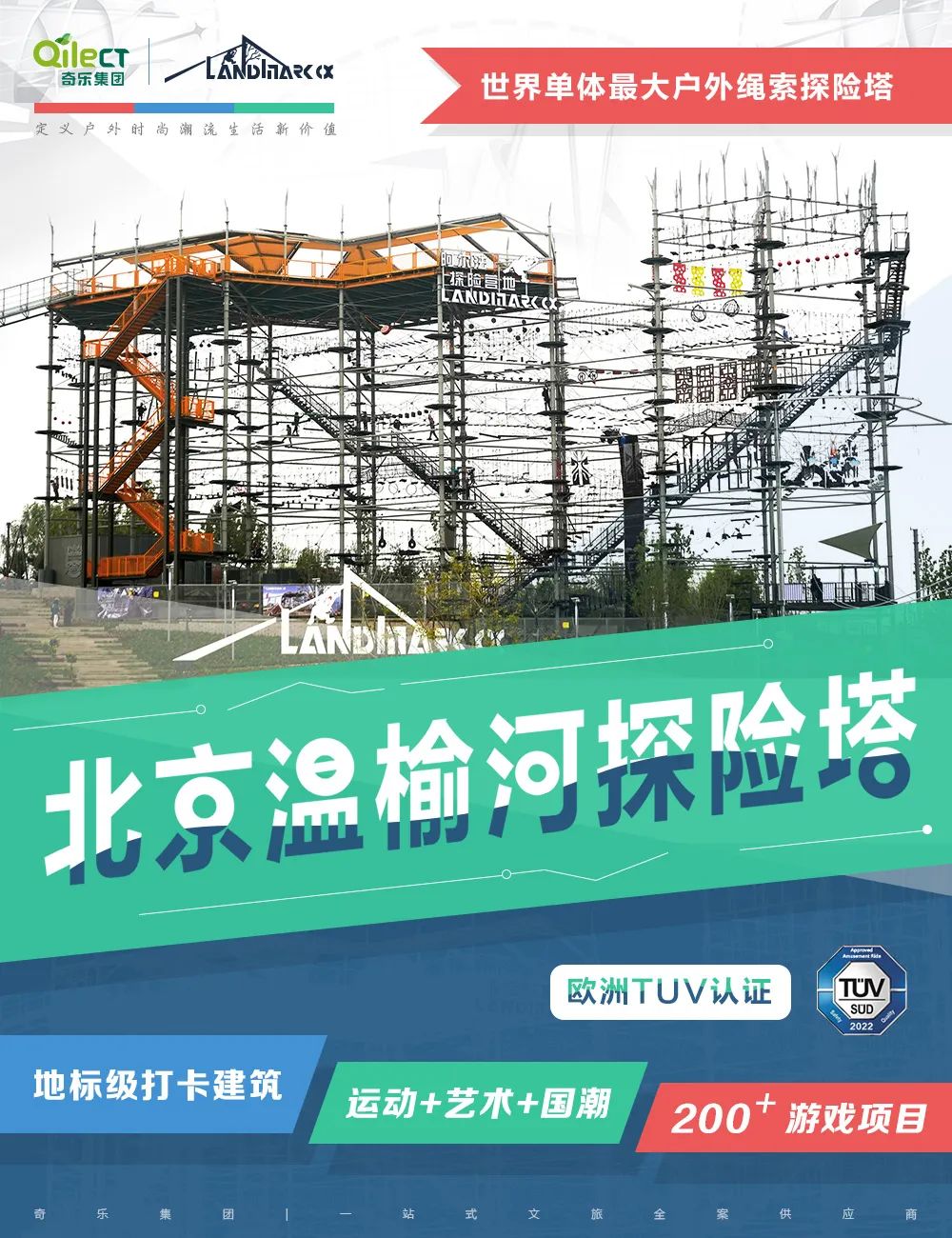 隨著“雙奧”之城的影響力不斷延伸,全民運動理念愈加成為新的潮流;“文化復興”國潮藝術(shù)風潮成蓬勃發(fā)展趨勢。我們在設計過程中,奇妙的將運動、藝術(shù)和國潮元素創(chuàng)新性地融入到探險塔中,現(xiàn)代科技與傳統(tǒng)文化相結(jié)合,使探險塔主題性變得更加豐富多彩。