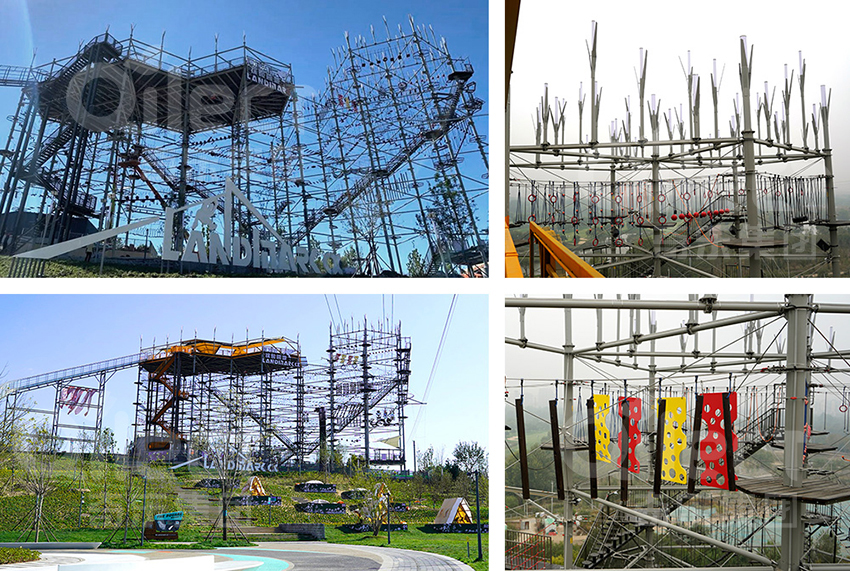奇樂以游客體驗、文化體驗方面出發(fā),團建社交、極限運動及周末休閑等功能點來創(chuàng)新開發(fā)匯集拓展、探險、滑道、滑索、蹦極、攀巖、爬網(wǎng)、高空秋千等218種不同的運動體驗項目。關(guān)卡式挑戰(zhàn)的設計,難易分區(qū),每個人都能在這里找到適合自己的挑戰(zhàn)項目。