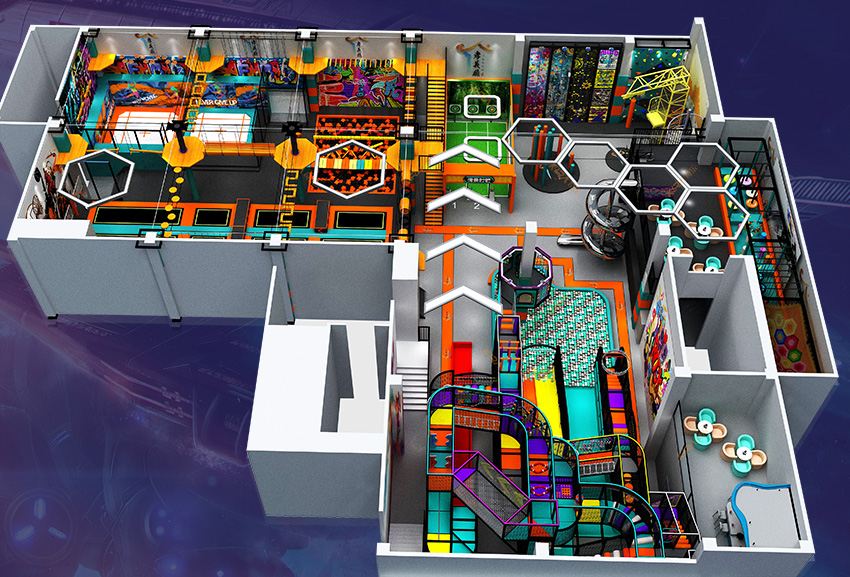 包含項目:專業蹦床、自由蹦床、走避墻、海洋球池,螺旋滑梯,波浪滑梯,互動投影,忍者拓展,創意攀巖,抱石攀巖,信仰之躍,梅花樁,高空拓展,情景射箭等(可根據實際場地大小定制)