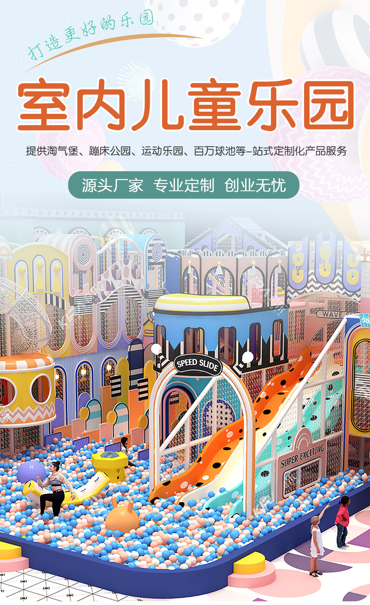 奇樂兒童樂園是包含淘氣堡、親子娛樂中心、彈跳迷宮、攀爬拓展、海洋球池等項目在內的一體化游樂設施。它有別于傳統的單一游樂設施,相比而言奇樂兒童樂園在項目上更加的豐富,在結構布局上更加的合理,在安全性穩定性上更有保障,在收益渠道上更加廣闊,是目前兒童樂園項目的主流。